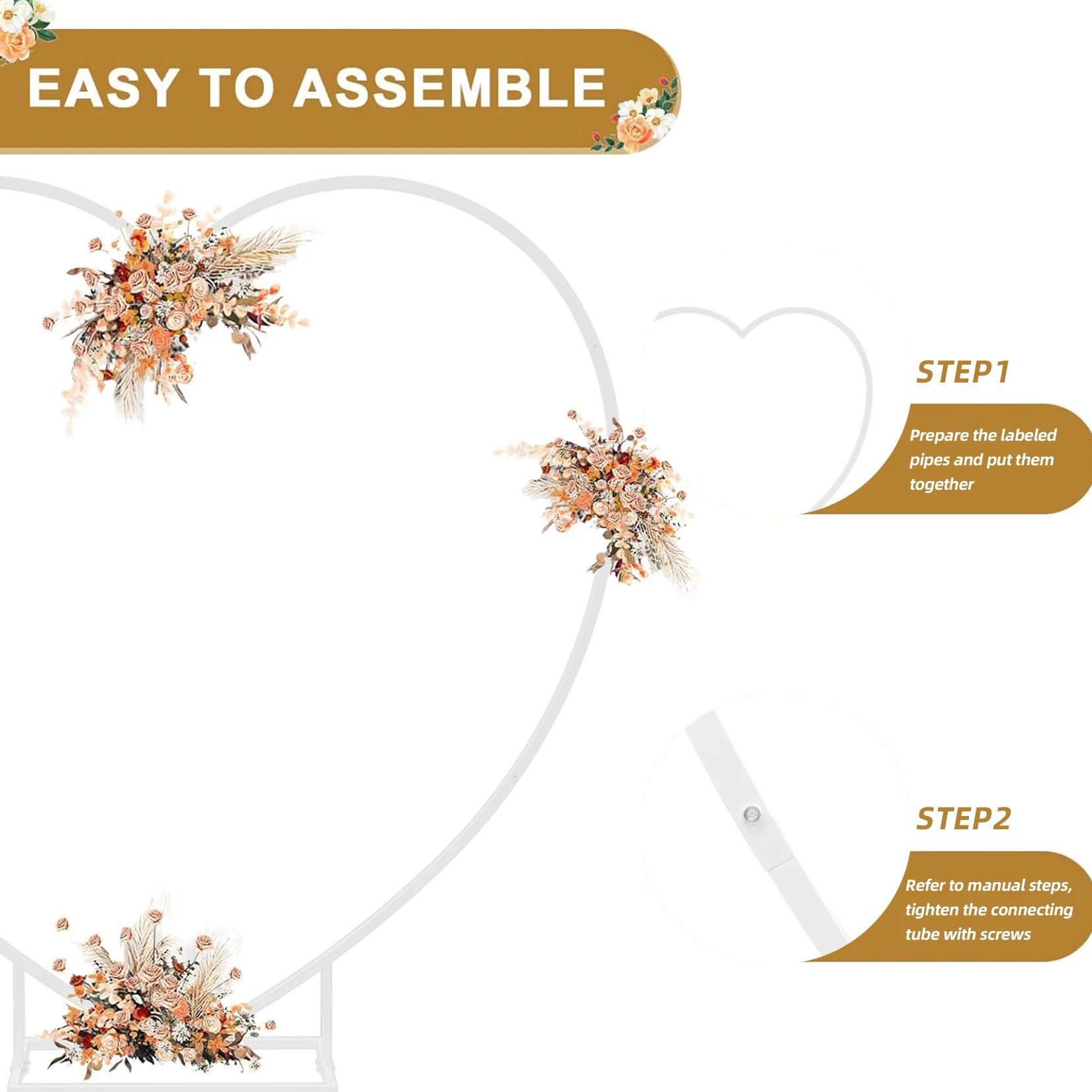Wichtiger Hinweis: Dieses Produkt umfasst nur den weißen Metallbogen. Blumen, Ballons und andere Dekorationselemente, die auf den Beispielfotos abgebildet sind, sind nicht enthalten, sodass Sie den Bogen nach Ihren Wünschen gestalten können.