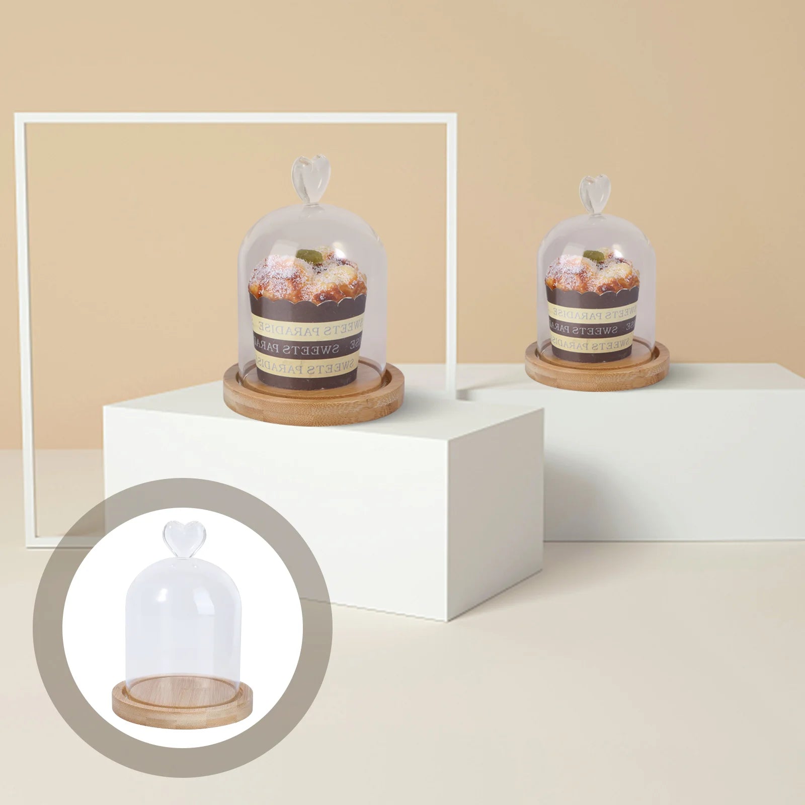 Klare Glasglocke mit Holzsockel