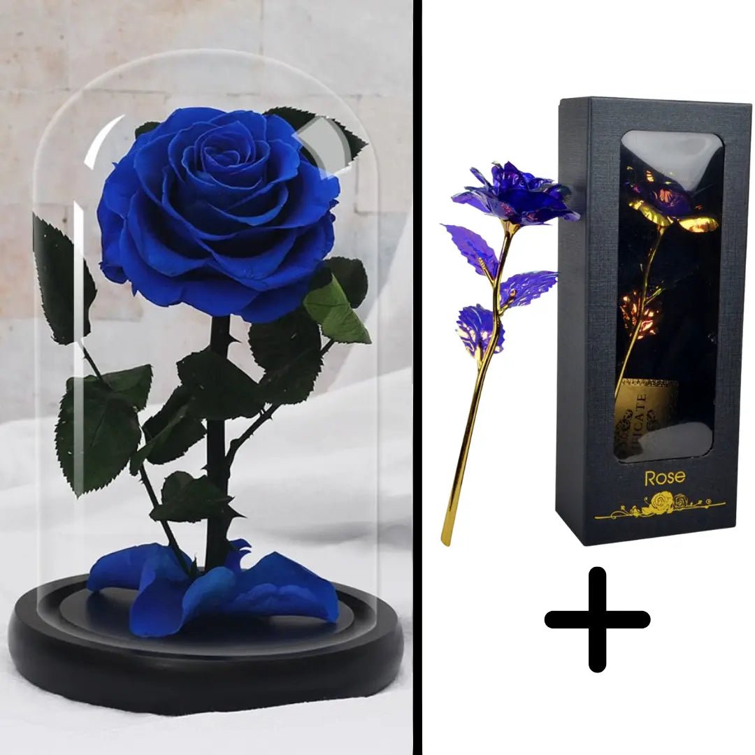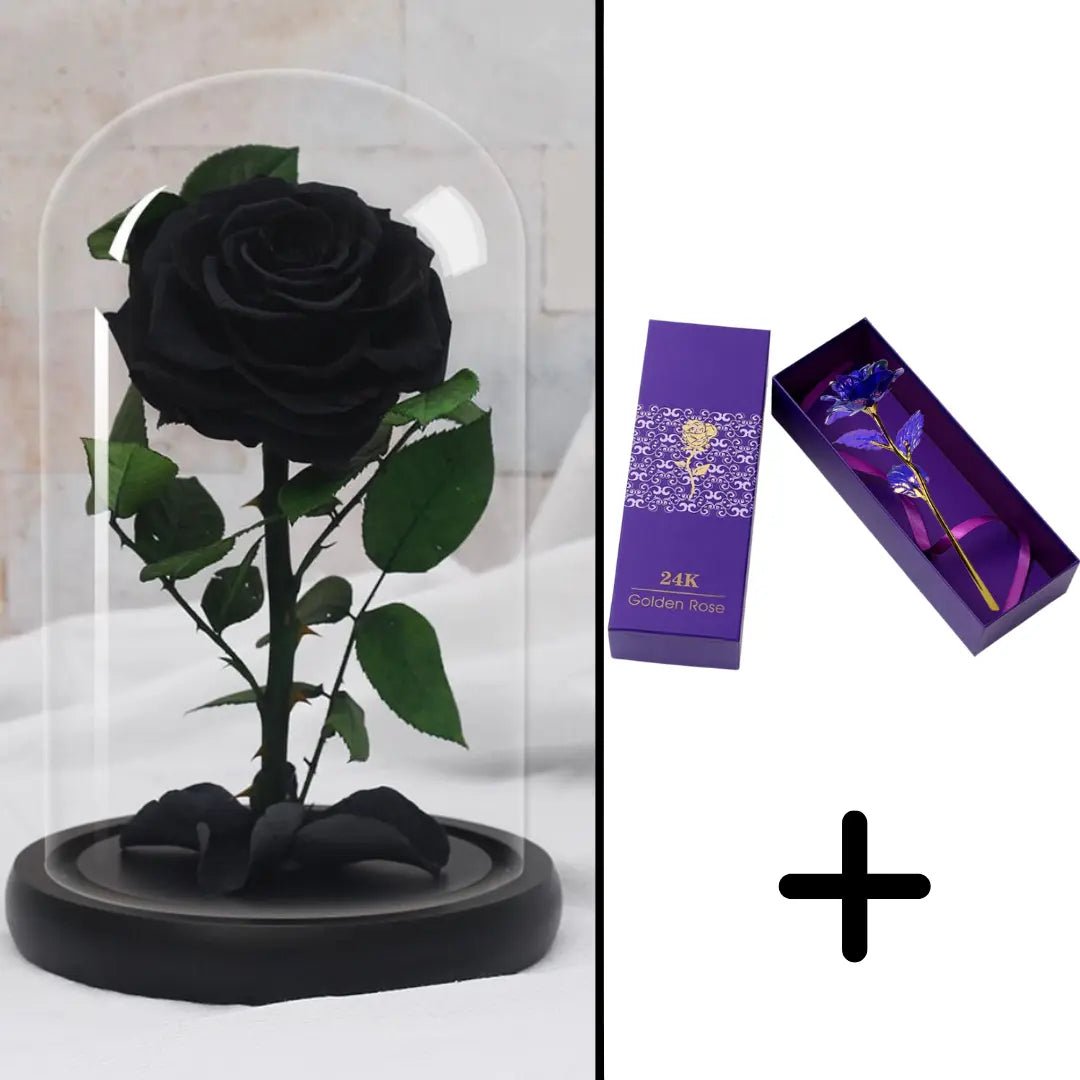 Give (or treat yourself to) this bundle pack of preserved, gold-plated roses for a unique and memorable gift. Make a bold statement with these two precious and luxurious items.