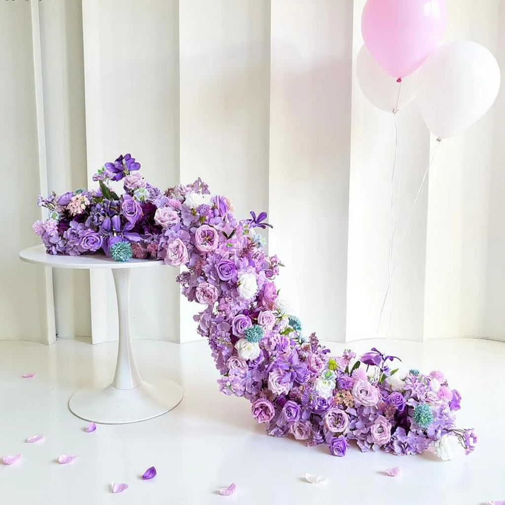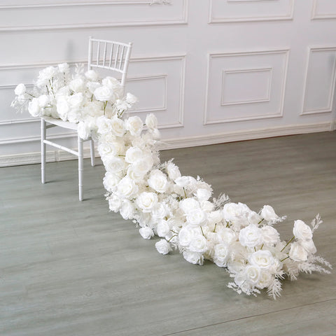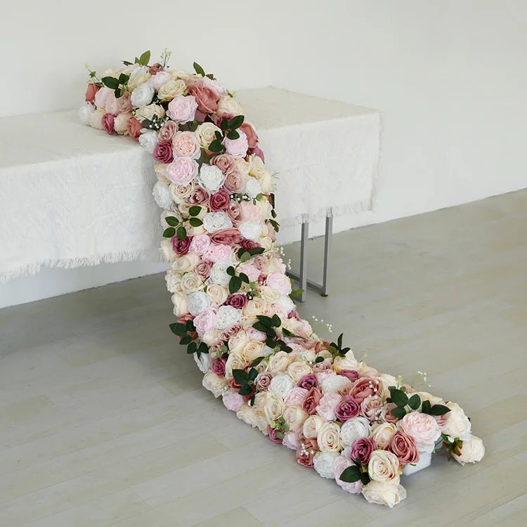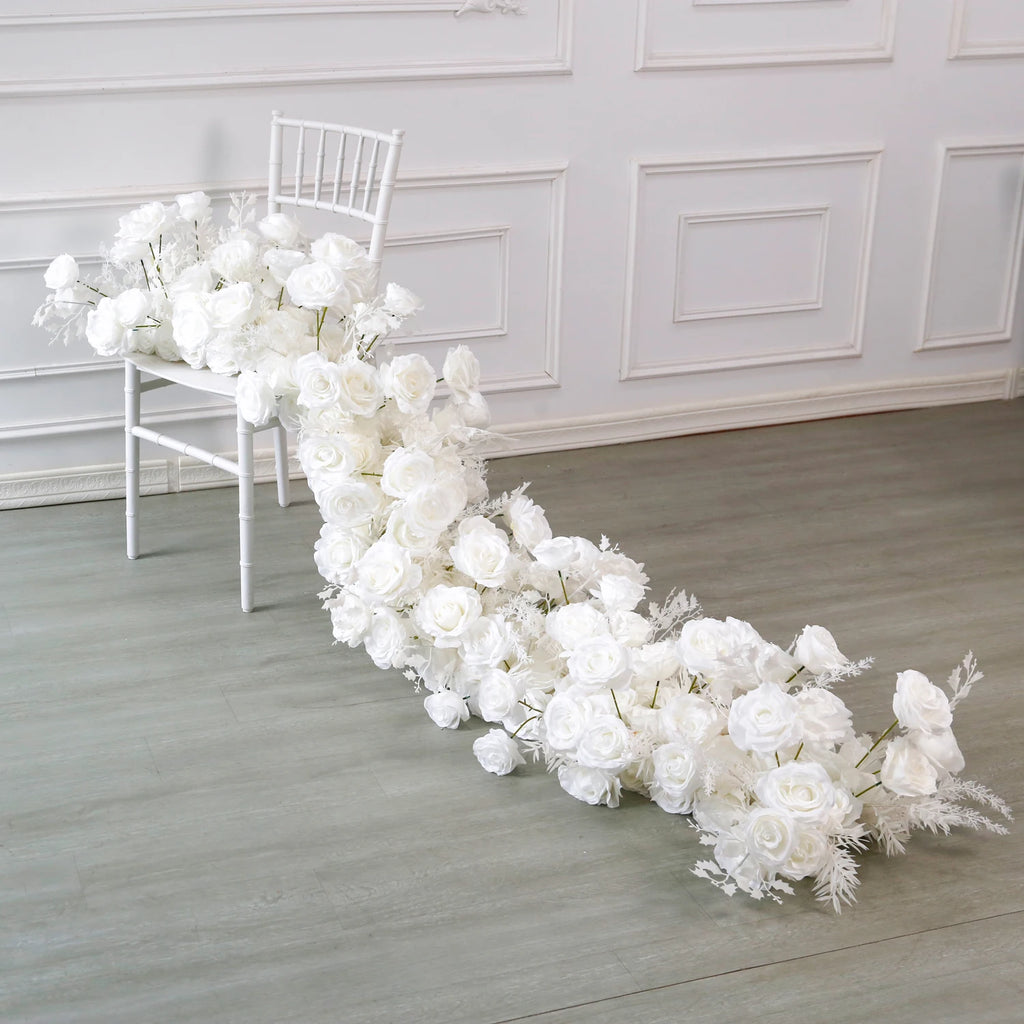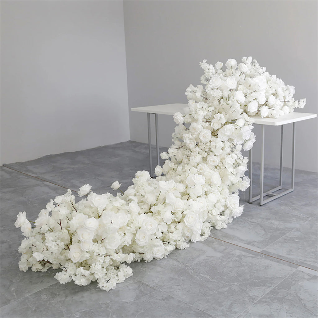 Apportez une touche d’élégance intemporelle à votre mariage avec notre chemin de table floral en soie luxueux. Conçu pour reproduire la beauté des fleurs naturelles, cet arrangement artificiel est parfait pour sublimer vos tables, arches et espaces événementiels, sans entretien.